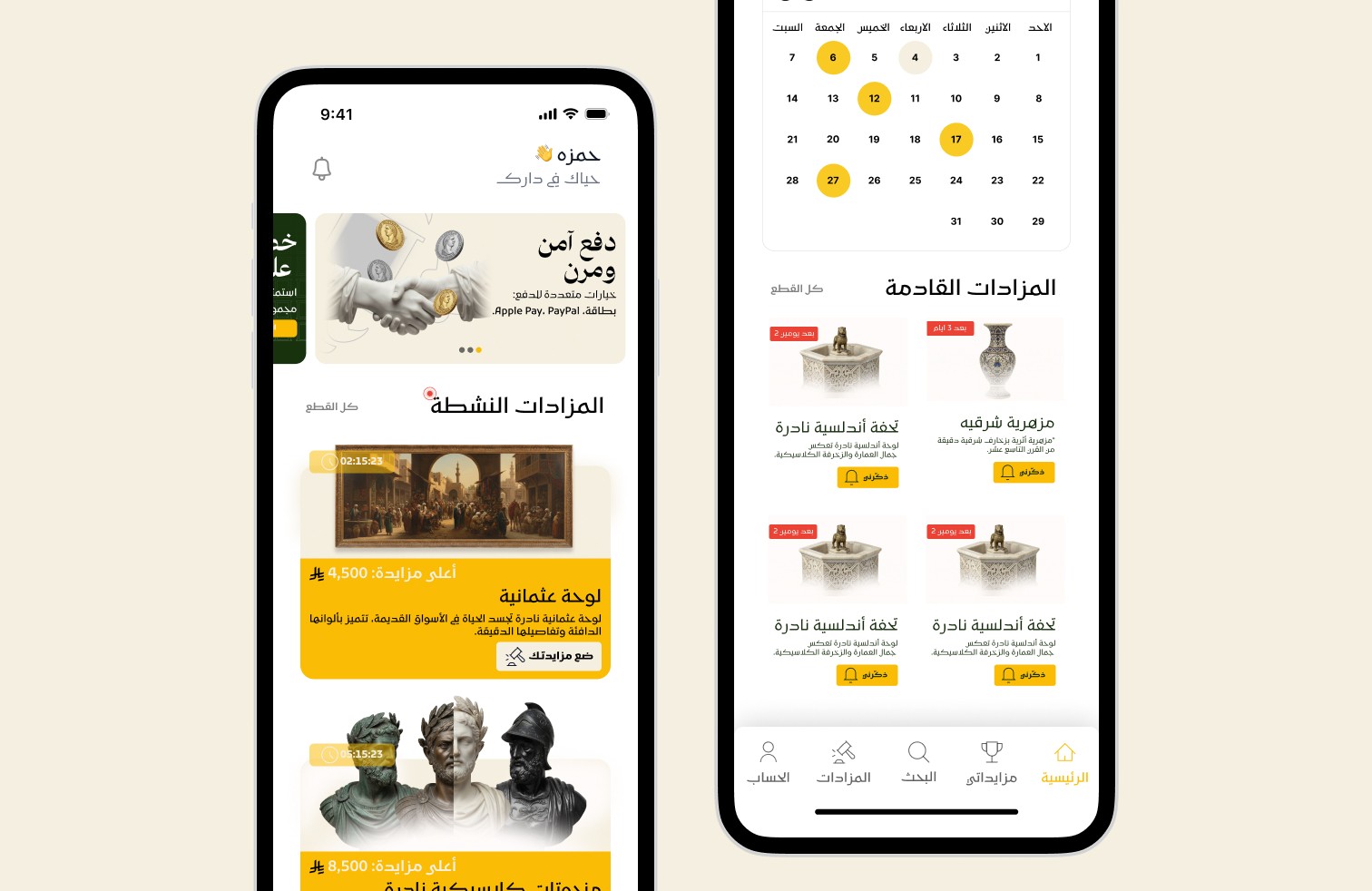 Dar Al Ateeq provides an elegant, structured, and user-centered interface that simplifies the auction experience. The design highlights key elements such as featured items, ongoing and upcoming auctions, item details, and bidding history through a clean and organized layout. With rich visuals, a clear navigation system, and intuitive bidding interactions, Dar Al Ateeq enhances user confidence and transforms the process of buying and selling classical art into an enjoyable, premium digital experience.